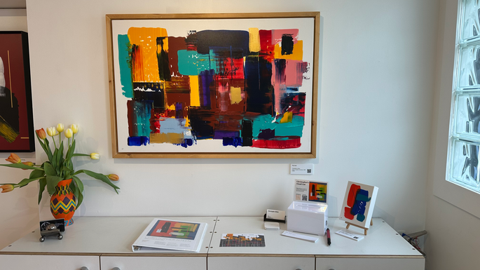 Skyline reflects the shifting landscape of emotion, where joy and fear intersect like the meeting of earth and sky. Painted during a time of personal transition, the piece captures the fluidity of feeling—how internal states can mirror the world around us. Layers of colour and form create a horizon that is both expansive and uncertain, embodying the tension between possibility and the unknown.